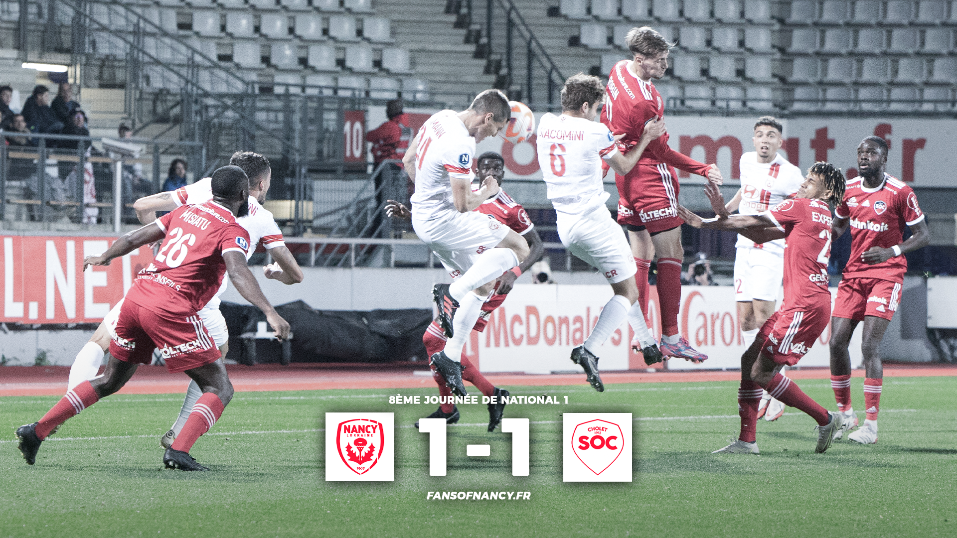 8ème journée de National 1 dans une ambiance encore remarquable, les Nancéiens n'ont pas su tenir la petite avance obtenue à la 71ème minute...